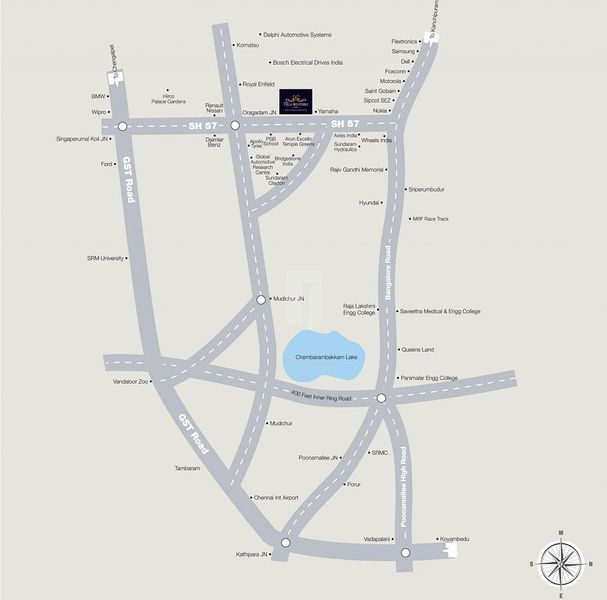 Near Vallakottai Murugan Temple 100% Vastu compliant layout design Underground Sewage, Power and Storm water Lines Avenue Plantation Natural Lake adjoining the property. Airport: Chennai International Airport 37 Kms Railway Station: ingapperumal Kovil Railway Station 19 Kms Hospital: Jaya Hospital 1 Kms City Center: Guindy 46 Kms School: PS Secondary School 1 Kms