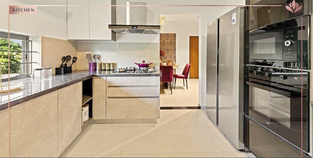 Kitchen : Platform will be finished with granite slab of 600 mm wide at height of 850 mm from the finished floor level