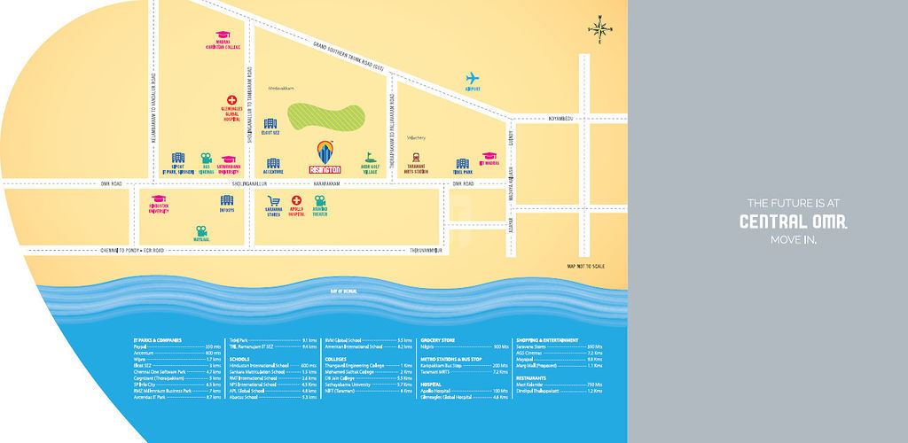 This project provides the connectivity to key locations of the city like Adyar, Thiruvanmiyur and Perungudi, and renowned Hospitals, Educational Institutions are in the proximity. You can reach other parts of the city through public and private mode of transportations.