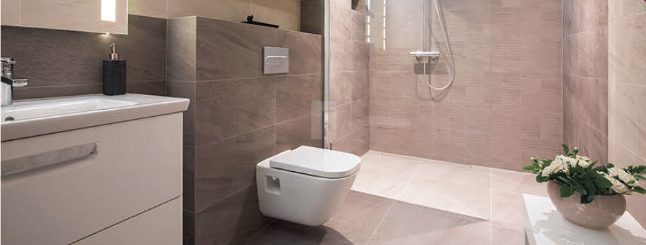 Ceramic tiles flooring and designer wall dadoing upto 7’0”ht.