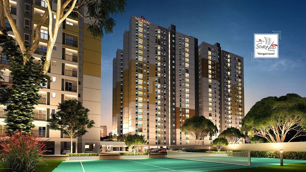 Navins proudly presents Starwood Towers, a fully equipped residential condominium with 588 apartments that is a mini vertical 14-floor township with basement plus stilts spread across eight towers. Located in Vengaivasal, equidistant between Velachery, OMR (IT Corridor) and Pallavaram, adjoining Medavakkam on the Mambakkam main road, Navins Starwood Towers comes to you with the latest Mivan construction technology, eco-friendly features, elegant architecture and design, a clubhouse, two commercial complexes featuring a bank, a departmental store, a clinic, a restaurant,a laundry , a salon and a host of other services. Truly a special niche, worthy of the Celebration of life. Navins Starwood Towers is a home you have been looking for and so richly deserve.