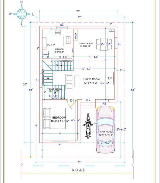 Main Door: First quality Teak wood with Frame size 5 inch by 4 and value up to Rs.45,000