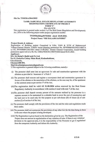 RERA Registration ID-TN/29/Building/0175/2022