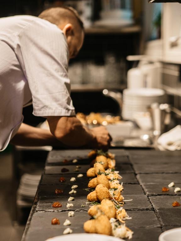 Indulge in exquisite dining at our on-site restaurant, Frukt & Fisk. Our menu features ingredients sourced from local farmers and fishermen, giving our guests a true taste of Norway. Guests can also enjoy a cocktail or glass of wine in our cozy lounge or by the fireplace in the library.